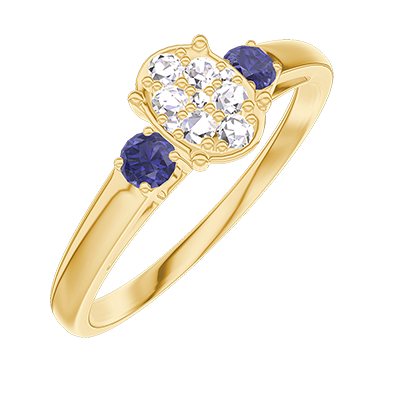 « L'ATELIER » Nº209961Anillo Oro amarillo 18 quilates - Conjunto de diamantes naturales Ovalo equivalente 0.5 - Piedras laterales Zafiro azul