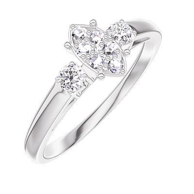 « L'ATELIER » N.º 210124Anillo Oro blanco 9 quilates - Conjunto de diamantes naturales Marquesa equivalente 0.5 - Piedras laterales Diamante