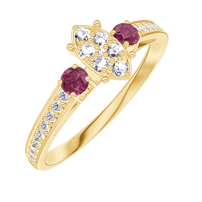 « L'ATELIER » N.º 210145Anillo Oro amarillo 18 quilates - Conjunto de diamantes naturales Marquesa equivalente 0.5 - Piedras laterales Rubí - Engastado Diamante