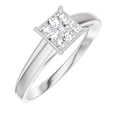 « L'ATELIER » Nº210304Anillo Oro blanco 9 quilates - Conjunto de diamantes naturales Princesa equivalente 0.7