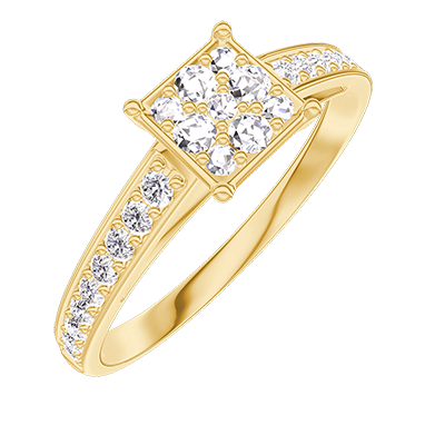 « L'ATELIER » N.º 210305Anillo Oro amarillo 18 quilates - Conjunto de diamantes naturales Princesa equivalente 0.7 - Engastado Diamante