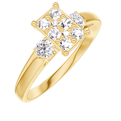 « L'ATELIER » Nº210422Anillo Oro amarillo 9 quilates - Conjunto de diamantes naturales Rectángulo equivalente 0.7 - Piedras laterales Diamante