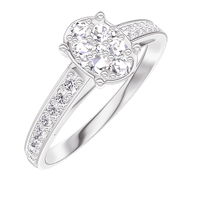 « L'ATELIER » N.º 210508Anillo Oro blanco 9 quilates - Conjunto de diamantes naturales Ovalo equivalente 0.7 - Engastado Diamante