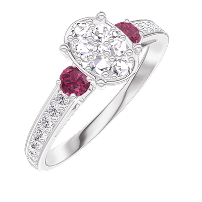 « L'ATELIER » N.º 210548Anillo Oro blanco 9 quilates - Conjunto de diamantes naturales Ovalo equivalente 0.7 - Piedras laterales Rubí - Engastado Diamante