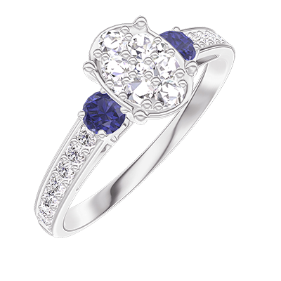 « L'ATELIER » N.º 210567Anillo Oro blanco 18 quilates - Conjunto de diamantes naturales Ovalo equivalente 0.7 - Piedras laterales Zafiro azul - Engastado Diamante