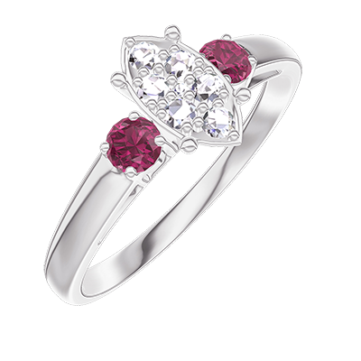 « L'ATELIER » Nº210744Anillo Oro blanco 9 quilates - Conjunto de diamantes naturales Marquesa equivalente 0.7 - Piedras laterales Rubí