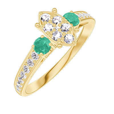 « L'ATELIER » N.º 210786Anillo Oro amarillo 9 quilates - Conjunto de diamantes naturales Marquesa equivalente 0.7 - Piedras laterales Esmeralda - Engastado Diamante