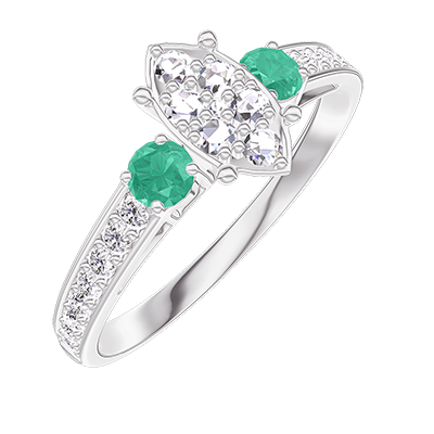 « L'ATELIER » N.º 210787Anillo Oro blanco 18 quilates - Conjunto de diamantes naturales Marquesa equivalente 0.7 - Piedras laterales Esmeralda - Engastado Diamante