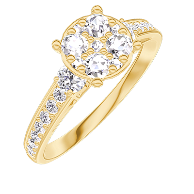 « L'ATELIER » N.º 210825Anillo Oro amarillo 18 quilates - Conjunto de diamantes naturales redondo equivalente 1 - Piedras laterales Diamante - Engastado Diamante 4.8