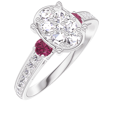 « L'ATELIER » N.º 211147Anillo Oro blanco 18 quilates - Conjunto de diamantes naturales Ovalo equivalente 1 - Piedras laterales Rubí - Engastado Diamante 4.7