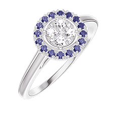 « L'ATELIER » N.º 211435Anillo Oro blanco 18 quilates - Conjunto de diamantes naturales redondo equivalente 0.5 - Halo Zafiro azul 4.7