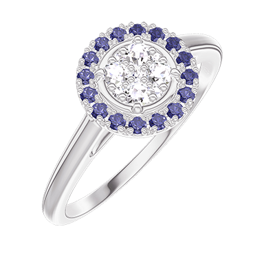 « L'ATELIER » N.º 211436Anillo Oro blanco 9 quilates - Conjunto de diamantes naturales redondo equivalente 0.5 - Halo Zafiro azul 4.7