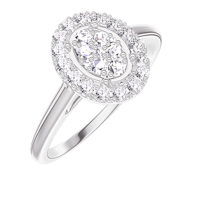 « L'ATELIER » Nº211548Anillo Oro blanco 9 quilates - Conjunto de diamantes naturales Ovalo equivalente 0.5 - Halo Diamante 4.5