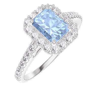 « L'ATELIER » N.º 211918Anillo Oro blanco 18 quilates - Topacio azul Rectángulo 0.5 quilates - Halo Diamante - Engastado Diamante 4.7