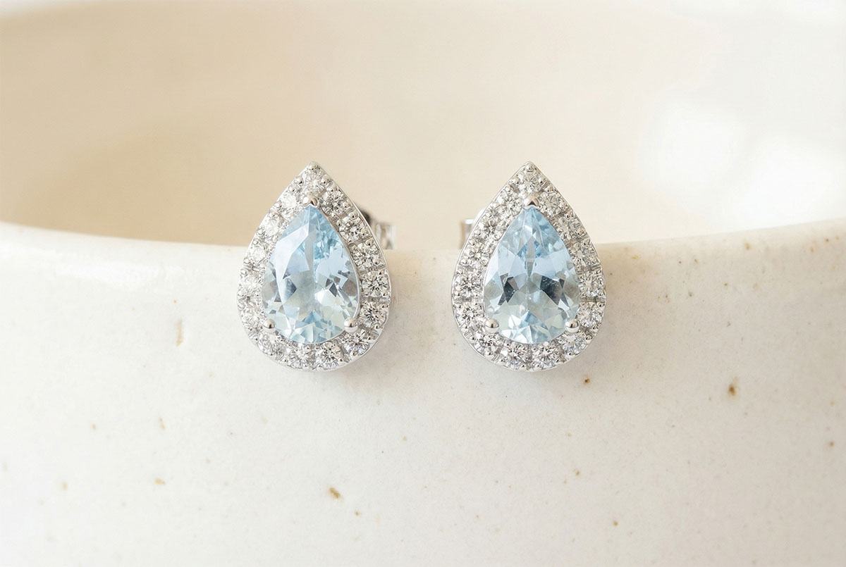 « L'ATELIER » N.º 212367Pendientes Oro blanco 18 quilates - Topacio azul Pera 0.3 quilates (2 X) - Halo Diamante