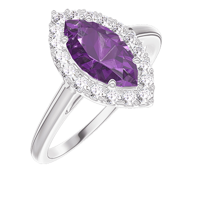 « L'ATELIER » Nº218539Anillo Oro blanco 9 quilates - Amatista Marquesa 0.5 quilates - Halo Diamante