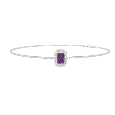 « L'ATELIER » N.º 218661Pulsera Oro blanco 18 quilates - Amatista Rectángulo 0.3 quilates - Halo Diamante - Cadenas Veneciana