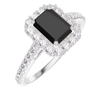 « L'ATELIER » N.º 224879Anillo Oro blanco 9 quilates - Diamante negro Rectángulo 0.5 quilates - Halo Diamante - Engastado Diamante 4.7