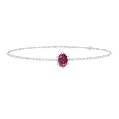 « L'ATELIER » N.º 402141Pulsera Oro blanco 9 quilates - Rubí Ovalo 0.3 quilates - Cadenas Esclavas