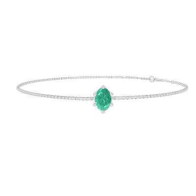 « L'ATELIER » Nº402239Pulsera Oro blanco 9 quilates - Esmeralda Ovalo 0.3 quilates - Cadenas Veneciana