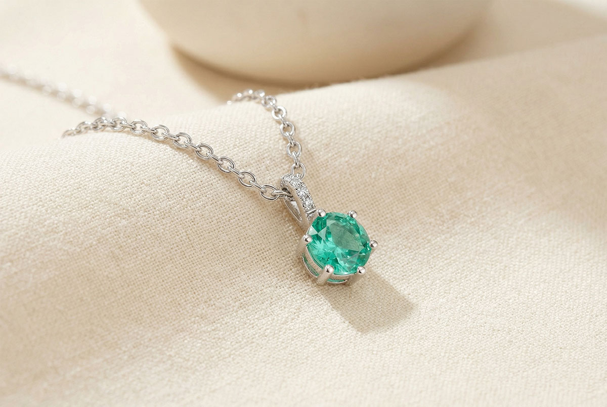 « L'ATELIER » N.º 404441Colgante Oro blanco 18 quilates - Esmeralda redondo 0.3 quilates - Engastado Diamante - Cadenas Esclavas 4.6