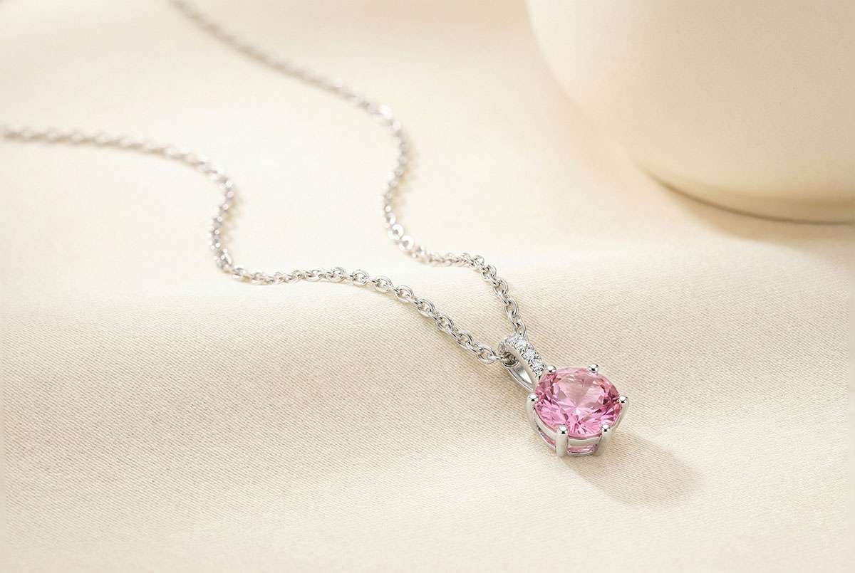 « L'ATELIER » N.º 406602Colgante Oro blanco 18 quilates - Zafiro rosa redondo 0.3 quilates - Engastado Diamante - Cadenas Esclavas 4.6