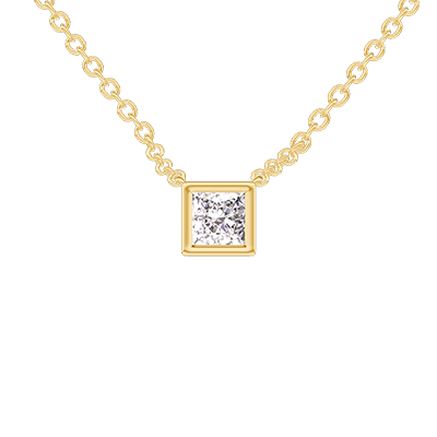 « L'ATELIER » N.º 413595Collar Oro amarillo 9 quilates - Diamante de laboratorio Princesa 0.3 quilates - Cadenas Esclavas