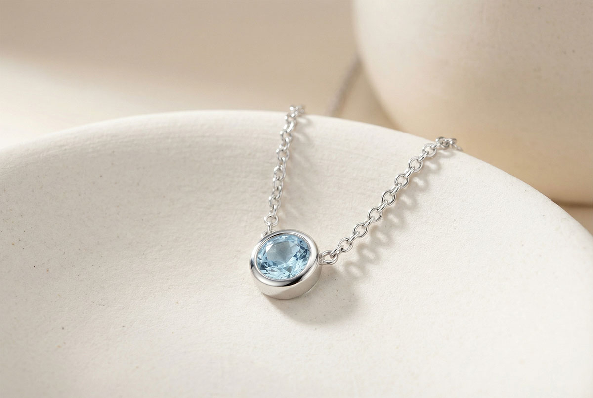 « L'ATELIER » N.º 414086Collar Oro blanco 9 quilates - Topacio azul redondo 0.3 quilates - Cadenas Esclavas 4.6