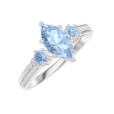 « L'ATELIER » Nº475713Anillo Oro blanco 18 quilates - Topacio azul Marquesa 0.5 quilates - Piedras laterales Topacio azul - Engastado Diamante