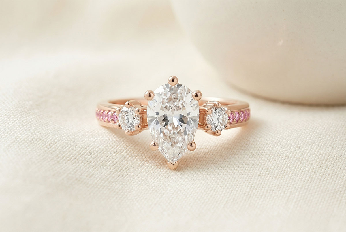 « L'ATELIER » N.º 496525Anillo Oro rosa 18 quilates - Diamante de laboratorio Pera 0.7 quilates - Piedras laterales Diamante de laboratorio - Engastado Zafiro rosa