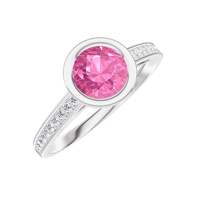 « L'ATELIER » N.º 596055Anillo Oro blanco 18 quilates - Zafiro rosa redondo 0.5 quilates - Engastado Diamante
