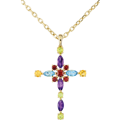 AVES DEL PARAíSO N.º 8Colgante Cruz - Oro amarillo 9 quilates - Cuarzo citrino, Topacio azul, Amatista, Peridoto, Granate ID : 2275 4.8