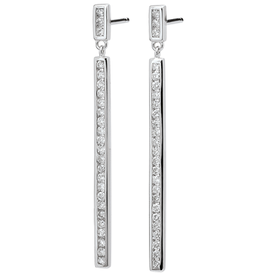 Un pavimento de diamantes minuciosos y refinados cuyo brillo ayuda a destacar el rostro que enmarcan con gran elegancia.