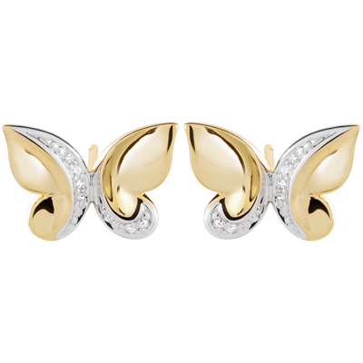 PASEO SOñADO N.º 3Pendientes cortos Mariposa - Oro blanco y Oro amarillo 9 quilates - Diamante ID : 2388 4.8