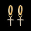 Una criolla adornada con su dije de oro amarillo en forma de cruz y empedrada con diamantes brillantes. Dimensiones del anillo del dije: 3,1 mm de diámetro.