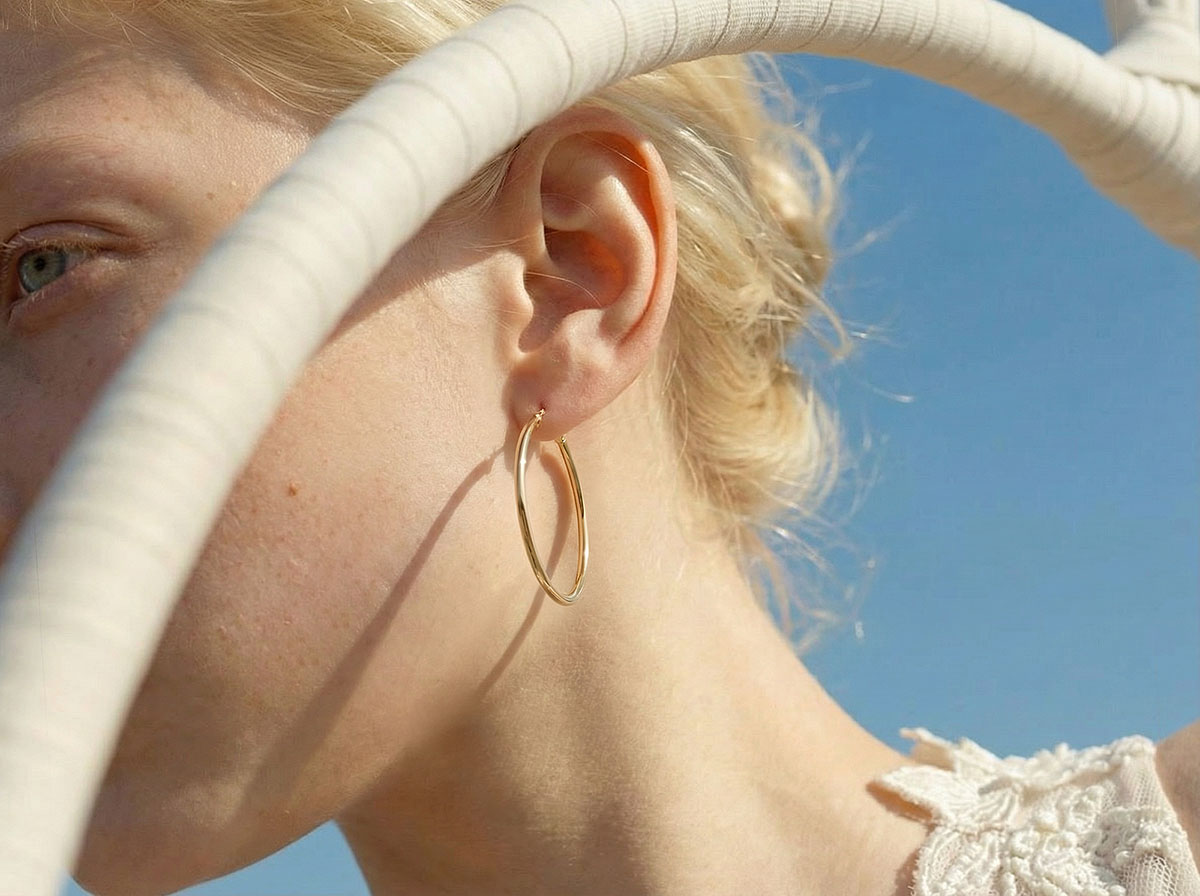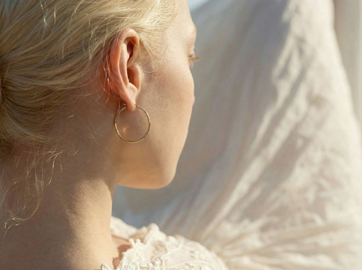 Su diseño minimalista y redondo resalta el cálido tono del oro amarillo, convirtiéndolos en un accesorio versátil para cualquier conjunto.