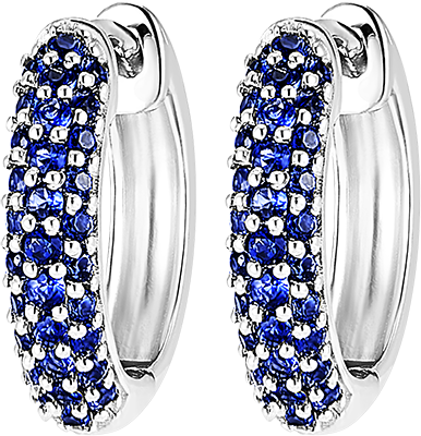 Un par de aros de oro blanco conformado por 62 zafiros delicados en tres filas. Una joya clásica y atemporal con un toque de color.