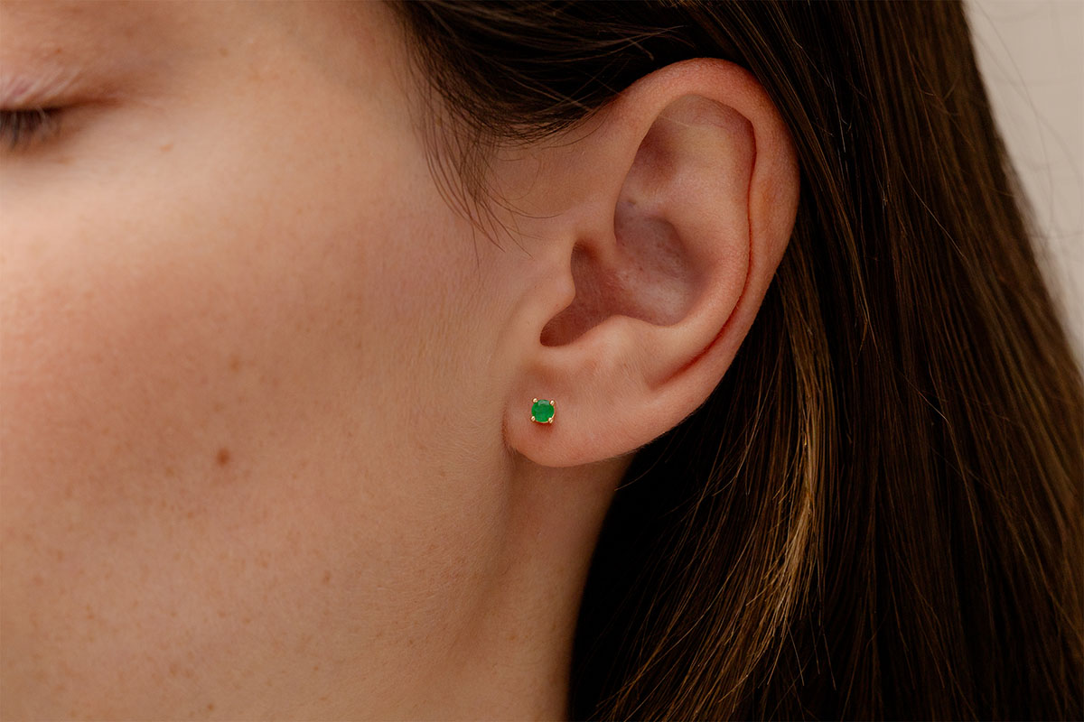 La elegancia y la esencia de dos esmeraldas lucidas con sobriedad sobre un brillante de oro amarillo. Una joya clásica y atemporal con un toque de color.