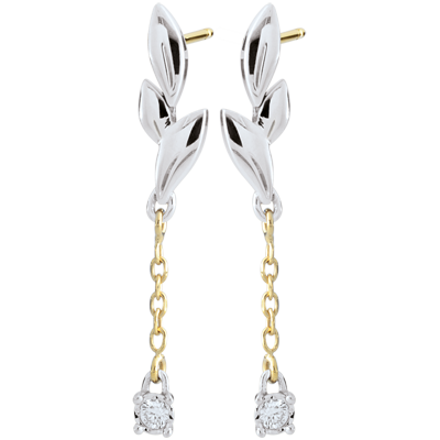 JARDíN ENCANTADO N.º 5Pendientes Hojas - Oro blanco y Oro amarillo 9 quilates - Diamante ID : 2533 4.9