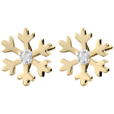 Dos Copos de Nieve de oro llevan en el centro un diamante brillante como el hielo.