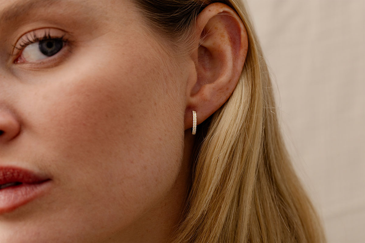 Un par de criollos de oro amarillo semi cubiertos con una doble fila de diamantes que aportan ligereza y elegancia.