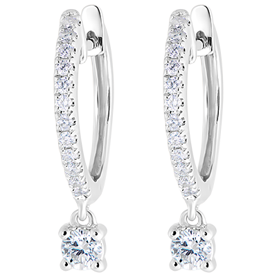 Un par de criollos de oro blanco semi cubiertos cuya borla con incrustaciones de diamantes añade un toque precioso y deslumbrante.