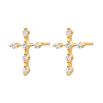 ORIGEN N.º 47Pendientes cortos Cruz - Oro amarillo 9 quilates - Diamante de laboratorio ID : 1585