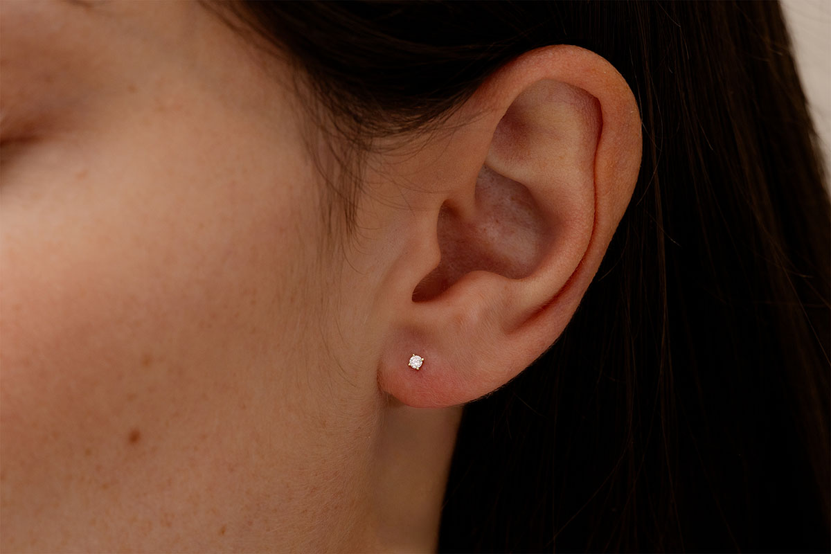 El brillo y la frescura de un par de mini pulgas de diamantes sobre oro amarillo. Para acompañarlos con otros motivos o para combinar sin moderación.