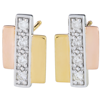 La alianza moderna de 3 oros con barras unidas aportan elegancia y originalidad a estos pendientes cortos.