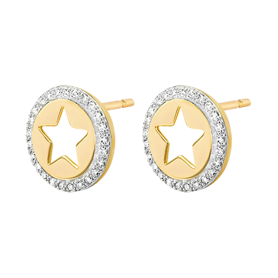 FRESCURA N.º 102Pendientes cortos Estrella - Oro blanco y Oro amarillo 18 quilates - Diamante ID : 7396