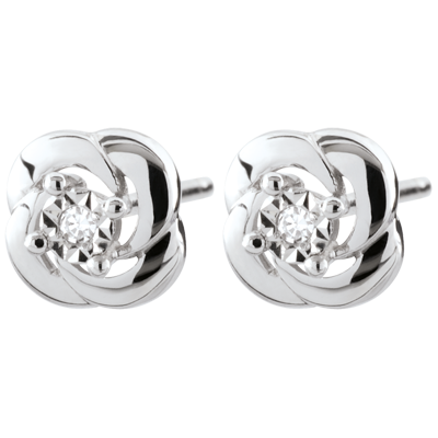 Delicadeza y feminidad se unen en estas bellas flores, con pétalos de Oro Blanco entorno a dos preciosos diamantes.