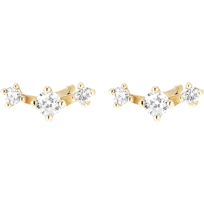 Un par de pendientes de oro amarillo adornados con 3 diamantes. Delicado y refinado, este modelo es perfecto para llevar a diario.