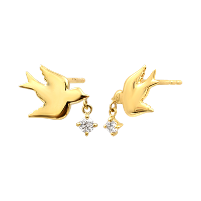 Dos delicadas golondrinas descansan sobre la oreja, engastadas con diamantes resplandecientes.Símbolo de impulso y libertad, tan ligeras como una brisa.