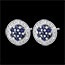 Un círculo pavé de diamantes rodea un conjunto de zafiros intensos, creando un brillo sutil y elegante.